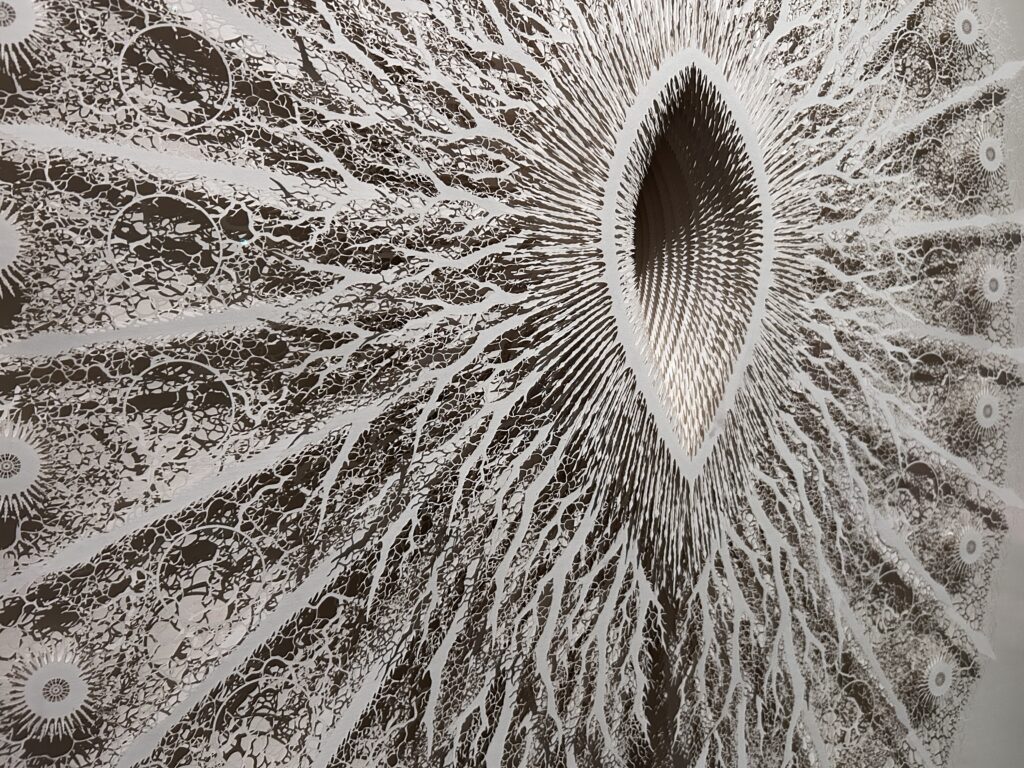 Het mooiste vond ik niet de de jurken, al waren die waanzinnig. Maar de kunstwerken van Rogan Brown. Ze zaten achter glas, en dat was maar goed ook, anders was ik er nog dichter op gaan staan met mijn neus.
