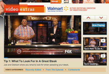 Enter de leuke filmpjes met tips voor het bakken van een lekkere biefstuk, met op de voorgrond de boodschappentas van Wallmart.
