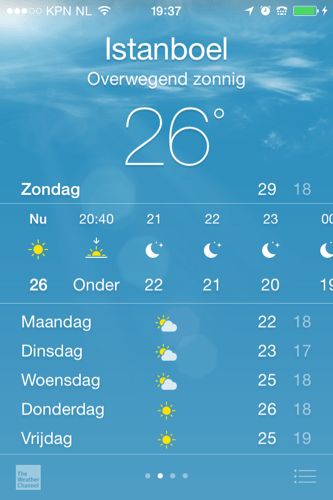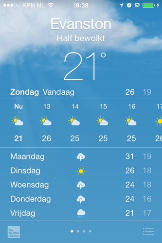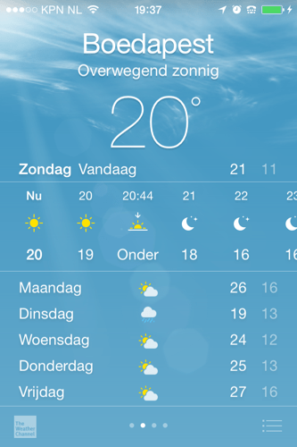 Ik checkte even de weer-app op mijn telefoon waar al mijn oude woonplaatsen nog in staan. (tsja)
